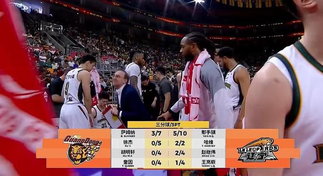 次节开局广东攻势有所好转,焦泊乔、麦考尔开局再造4罚,萨姆纳抢断反击制造2+1,两回得到5分帮助广东打出一波9-4将分差缩小到10分。