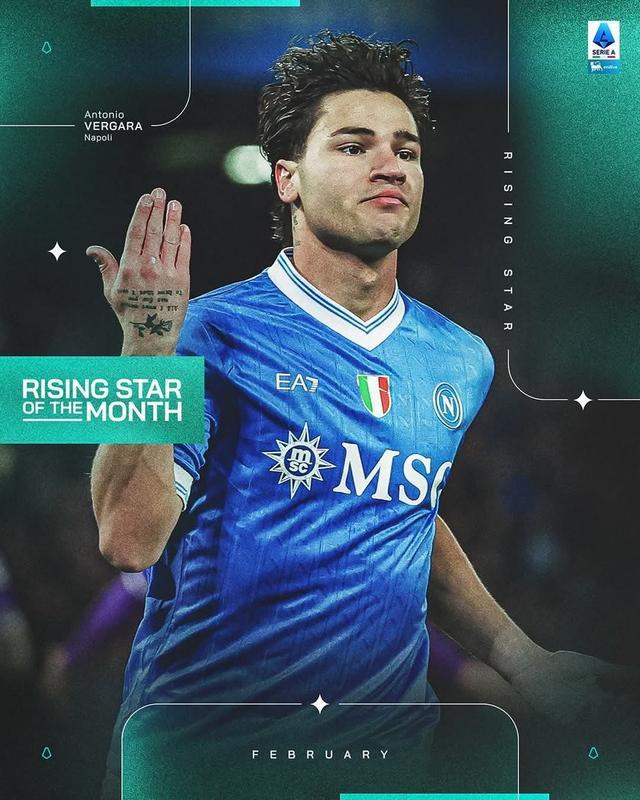 北京时间3月5日,意甲官方宣布,那不勒斯的攻击手韦尔加拉当选意甲2月最佳U23球员。